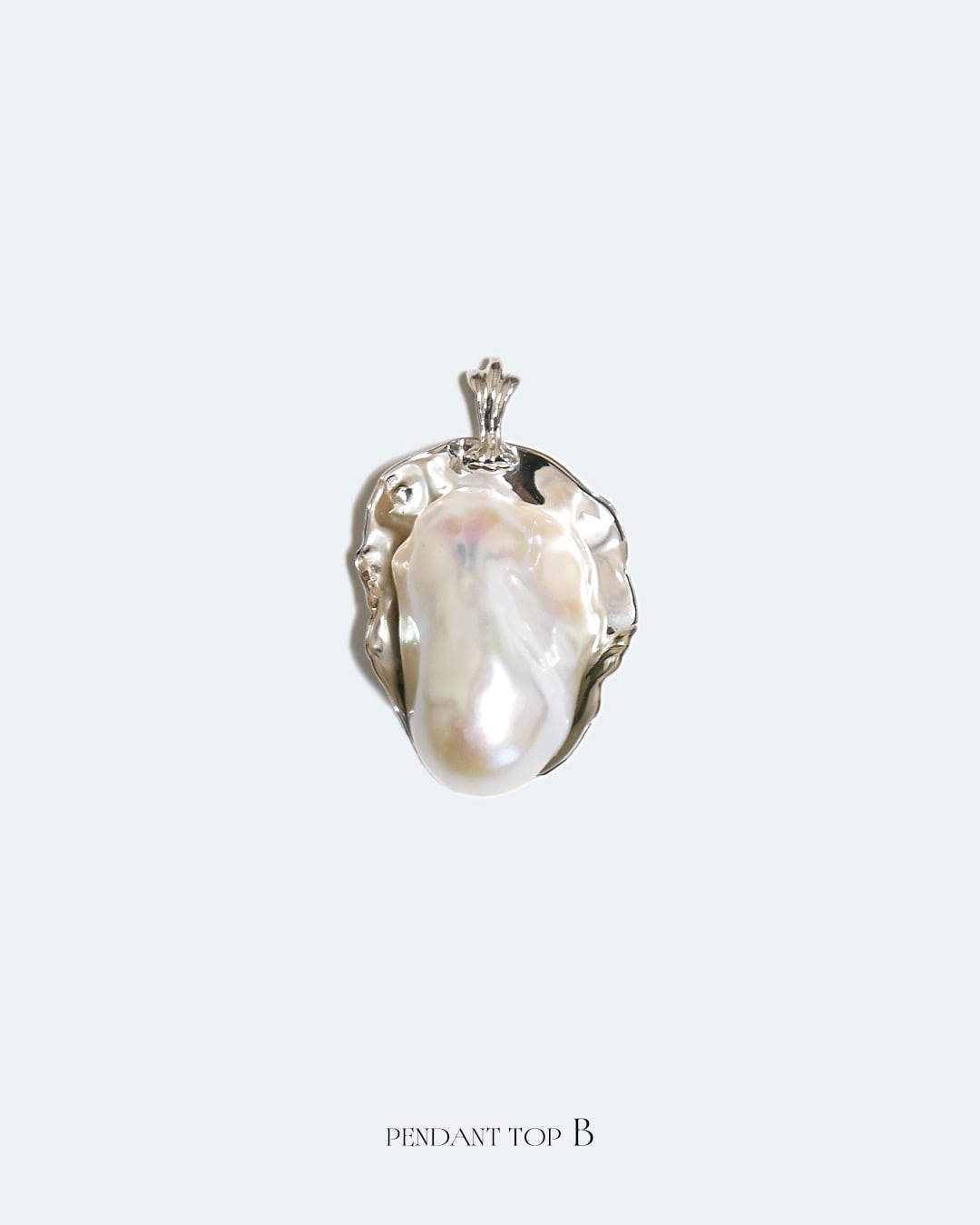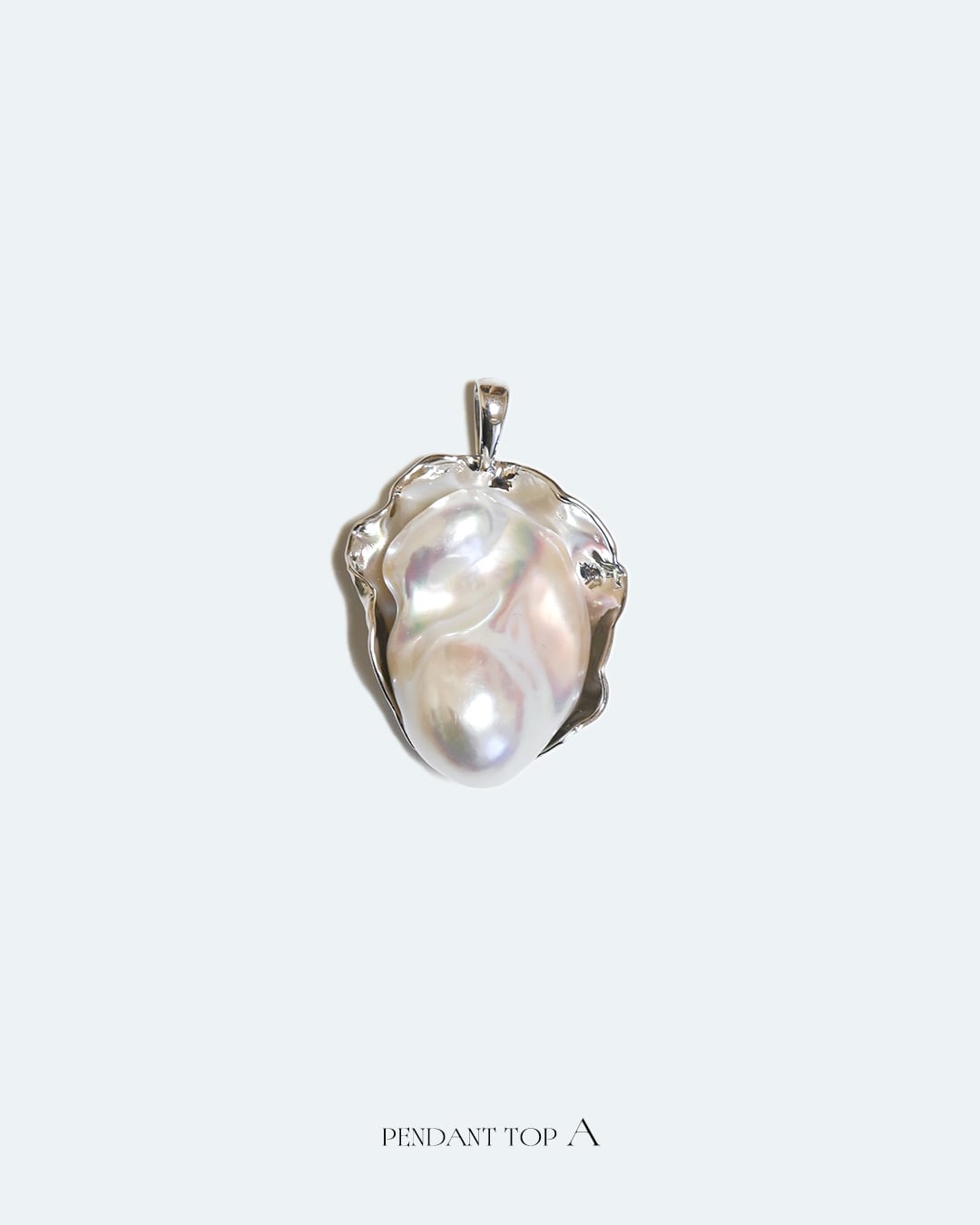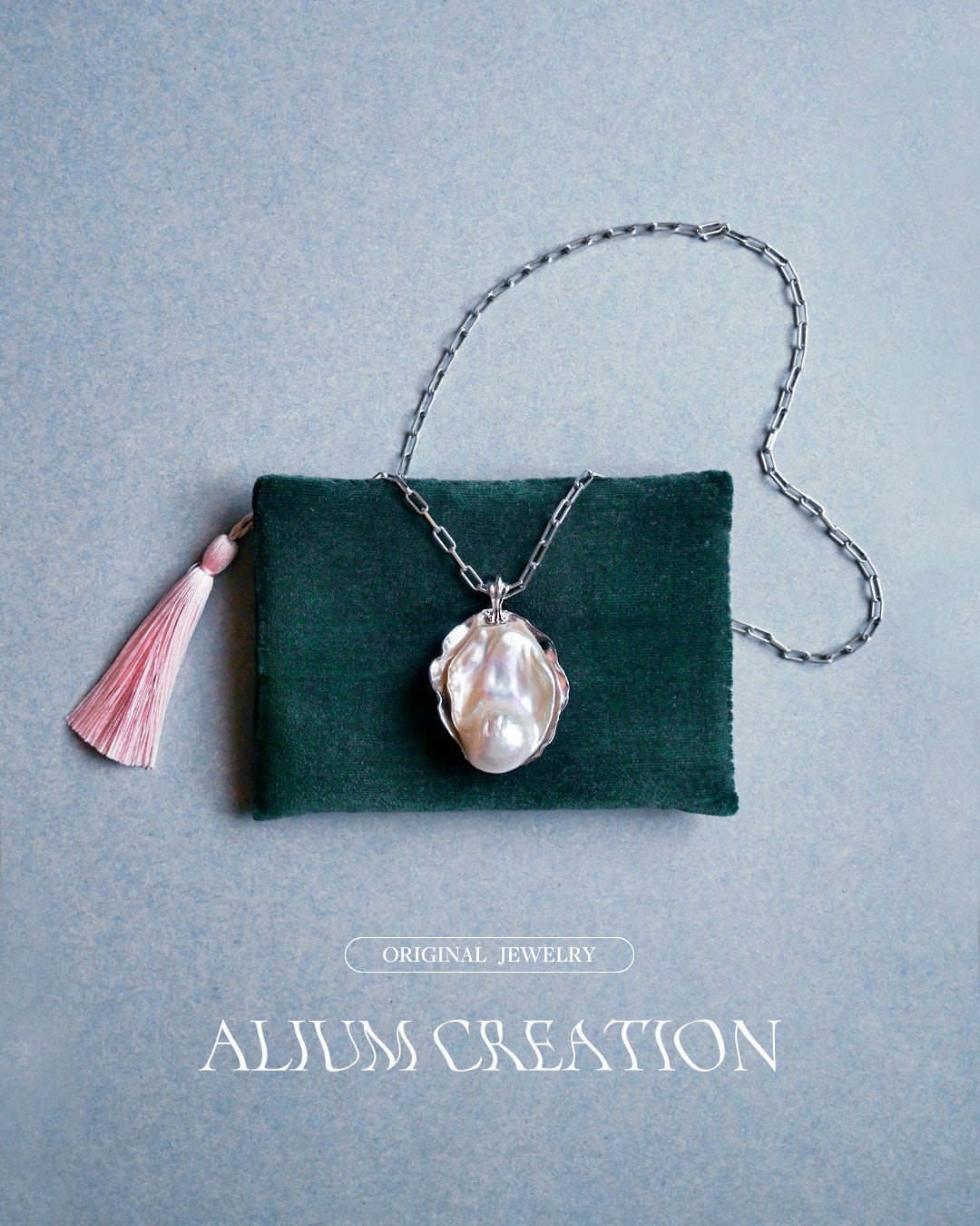 バロックパールを牡蠣に見立て、ひとつひとつ手作業で仕立てた1点もののペンダントトップ