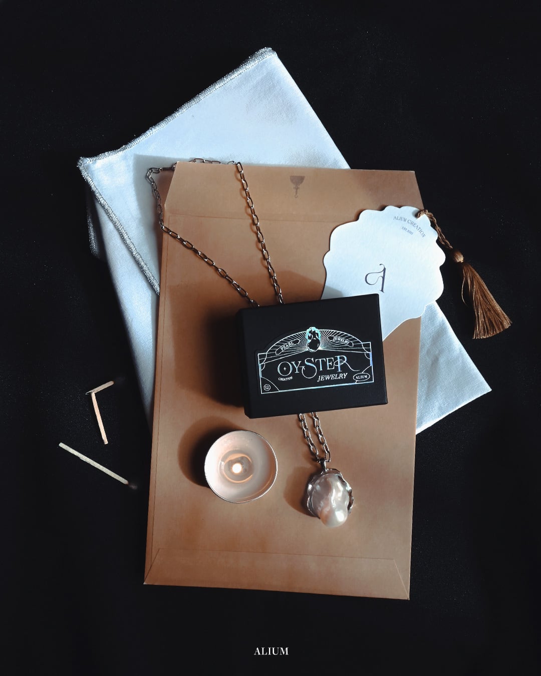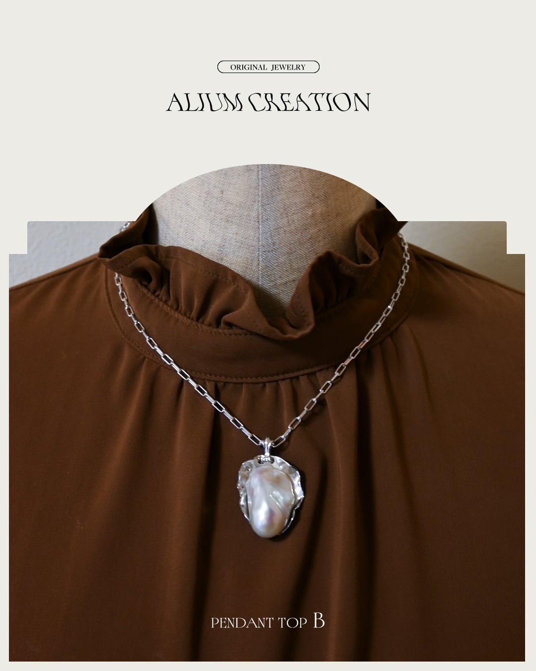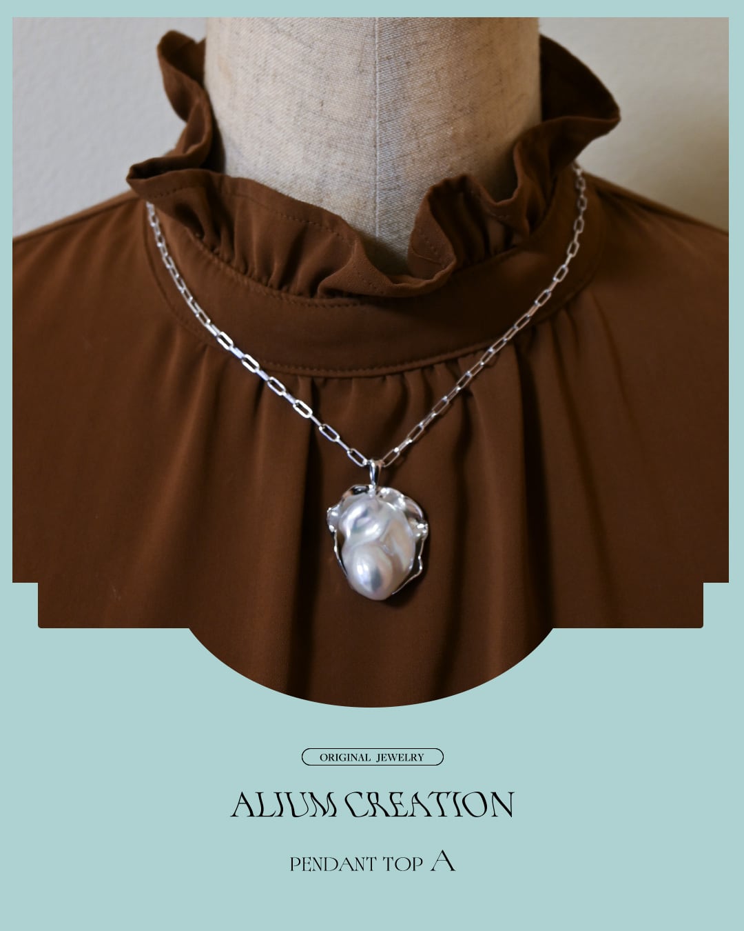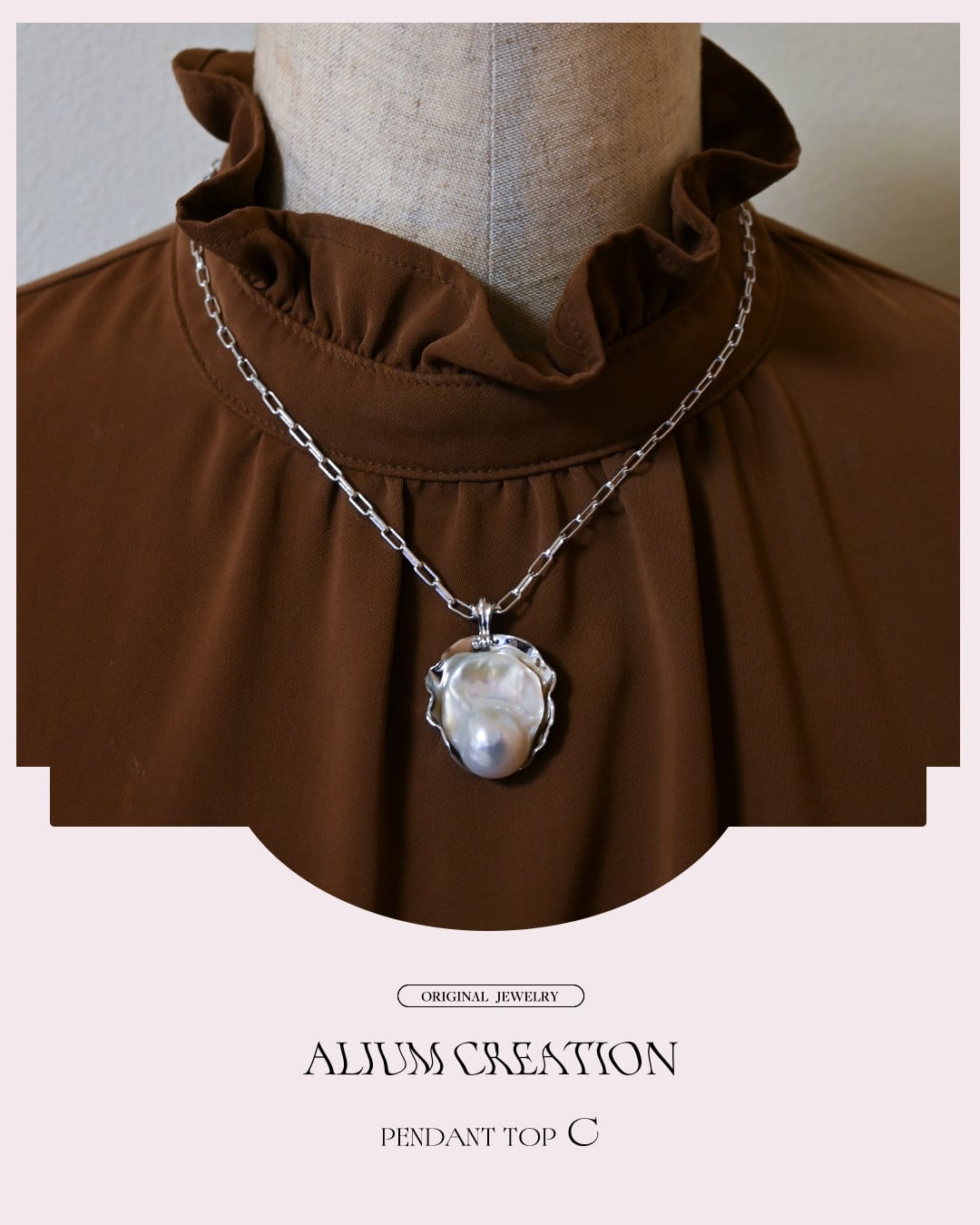 バロックパールを牡蠣に見立て、ひとつひとつ手作業で仕立てた1点もののペンダントトップ