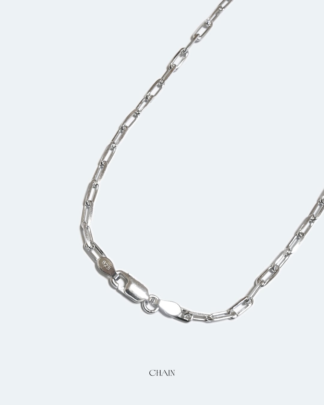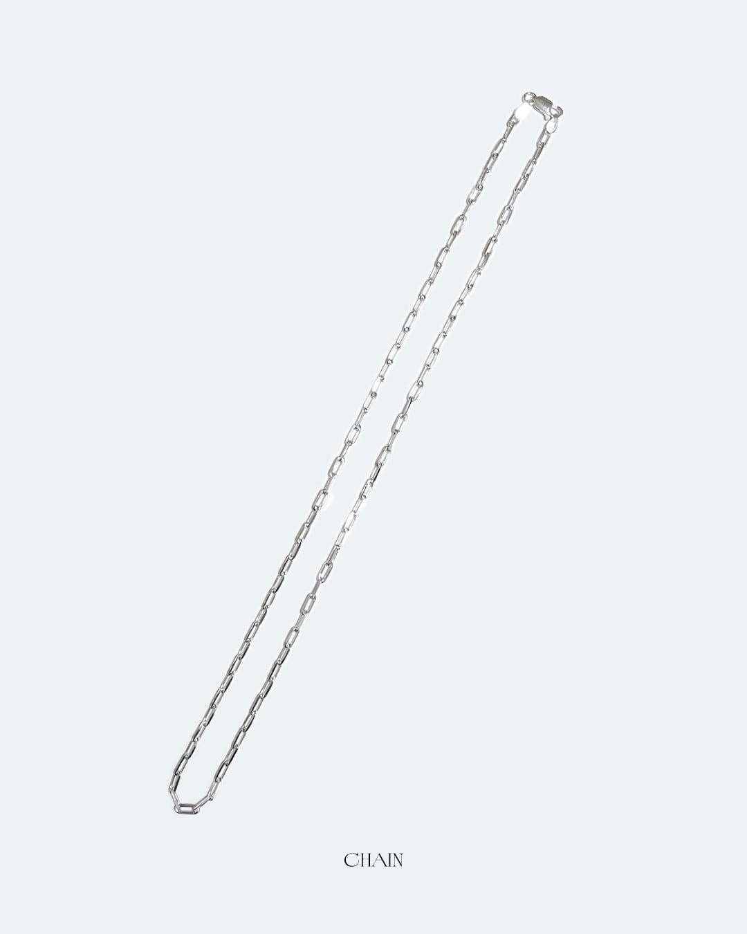 お顔周りにパールが映えるようジャストサイズでセレクトした45cmSilverチェーン(別売り)は、タイトなハイネックとの相性も抜群
